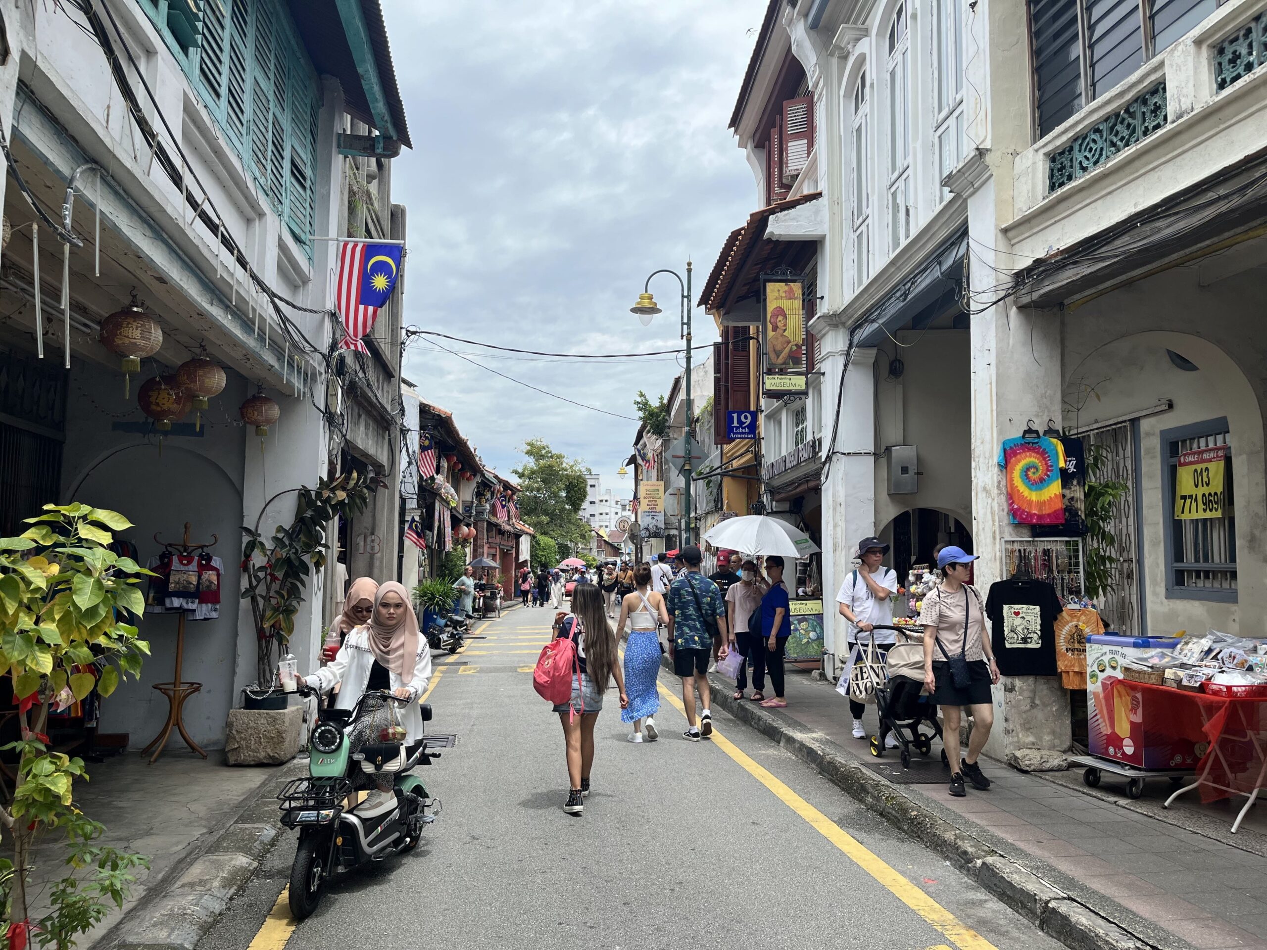 Despertamos sin prisas. Si apetece, nos acercamos a un pequeño mercado local, frutas de clima fresco, verduras recién cortadas y sonrisas que no necesitan idioma. Un último vistazo a las colinas peinadas de té y emprendemos el descenso hacia Penang. La carretera serpentea, el verde se hace tropical otra vez y, al fondo, aparece el mar. Cruzamos los puentes, cambia la luz y nos espera George Town, color, historia y ganas de seguir.