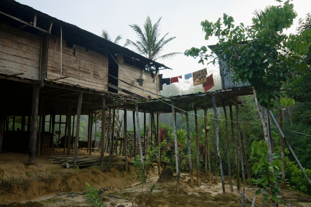 El agua dicta el camino. Subimos en barca por un río de espejo, bordeado de selva, hasta que aparece la longhouse, madera, risas, niños descalzos. Nos dan la bienvenida como se hace aquí, un apretón de manos, té caliente y curiosidad compartida.